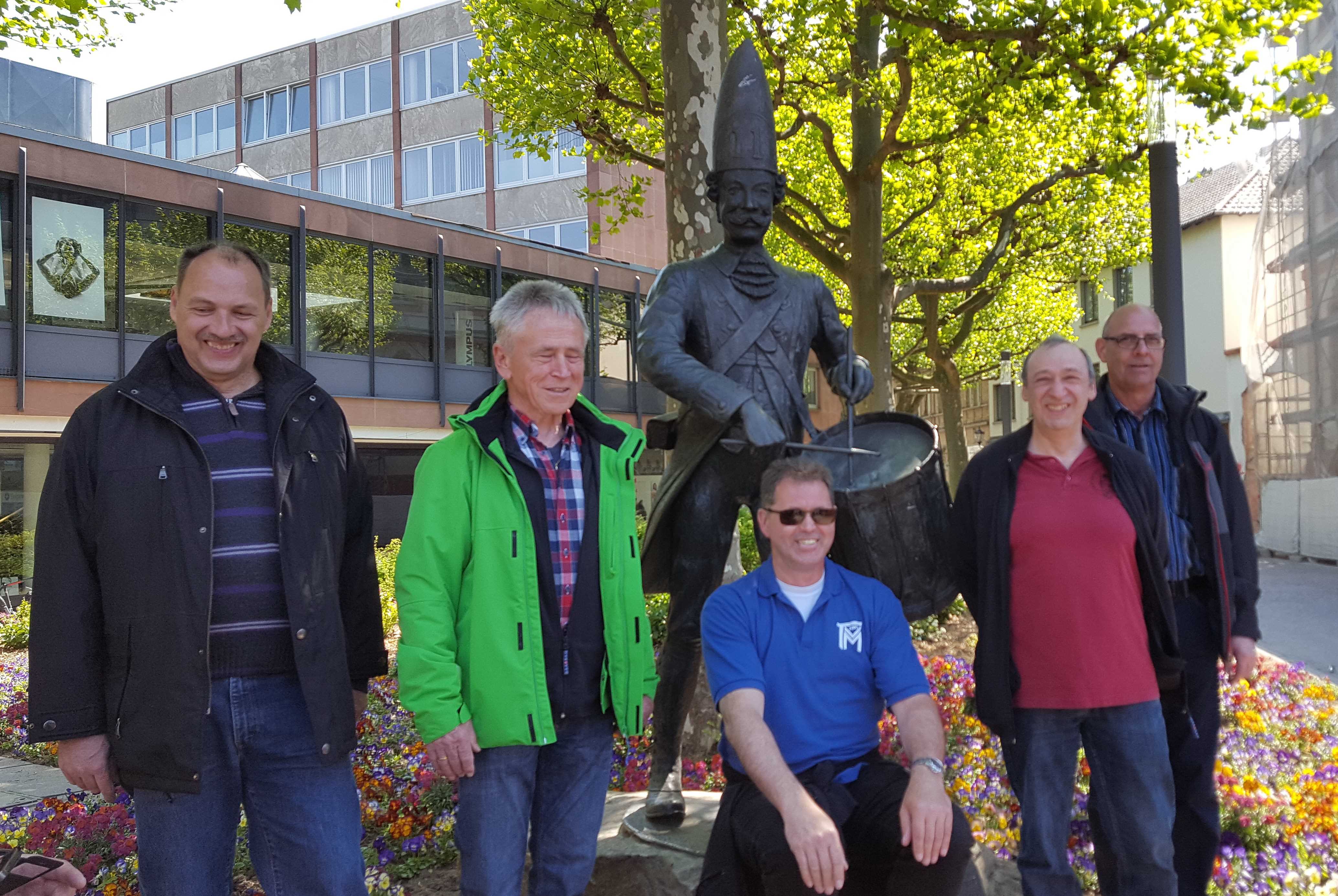 Monat für Monat fährt Walter Huth von Vendersheim bei Alzey nach Michelbach zu Proben und Auftritten des Senioren-Spielmannszuges. Im 35. Jahr ihres Bestehens haben die Spielleute jetzt das Ganze einmal umgekehrt. Wir haben am 30.April unsere Instrumente eingepackt und sind zu Walter gefahren. Nicht, ohne vorher noch einen Abstecher nach Mainz mit Stadtführung, Frühstück am Rhein und Stadtbummel gemacht zu haben.