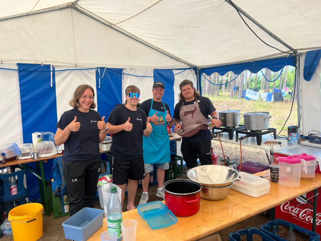 Vor Ort wurden zunächst die Raumstationen – sprich Zelte – aufgebaut und die Umgebung erkundet. Zum Abendessen stärkten sich alle mit Burgern, bevor der Tag bei ersten Kennenlernspielen ausklang. Kurz nach dem Zubettgehen sorgte ein kräftiger Regenschauer für die erste Herausforderung: Einige Zelte wurden nass. Doch durch schnelles Umorganisieren der Schlafplätze konnte auch diese Mission erfolgreich gemeistert werden.