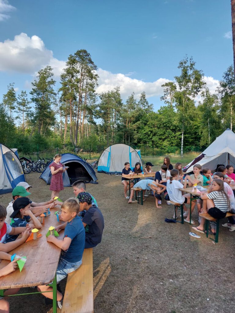 Da das Wetter an diesem Tag auf unserer Seite war, konnten sich die Kinder anschließend im Wasser abkühlen. Eine ausgelassene Wasserschlacht durfte dabei natürlich nicht fehlen! Nach dem Duschen und einem gemeinsamen Abendessen ging es gut gelaunt in die zweite Nacht, diesmal zum Glück ohne nasse Zelte.