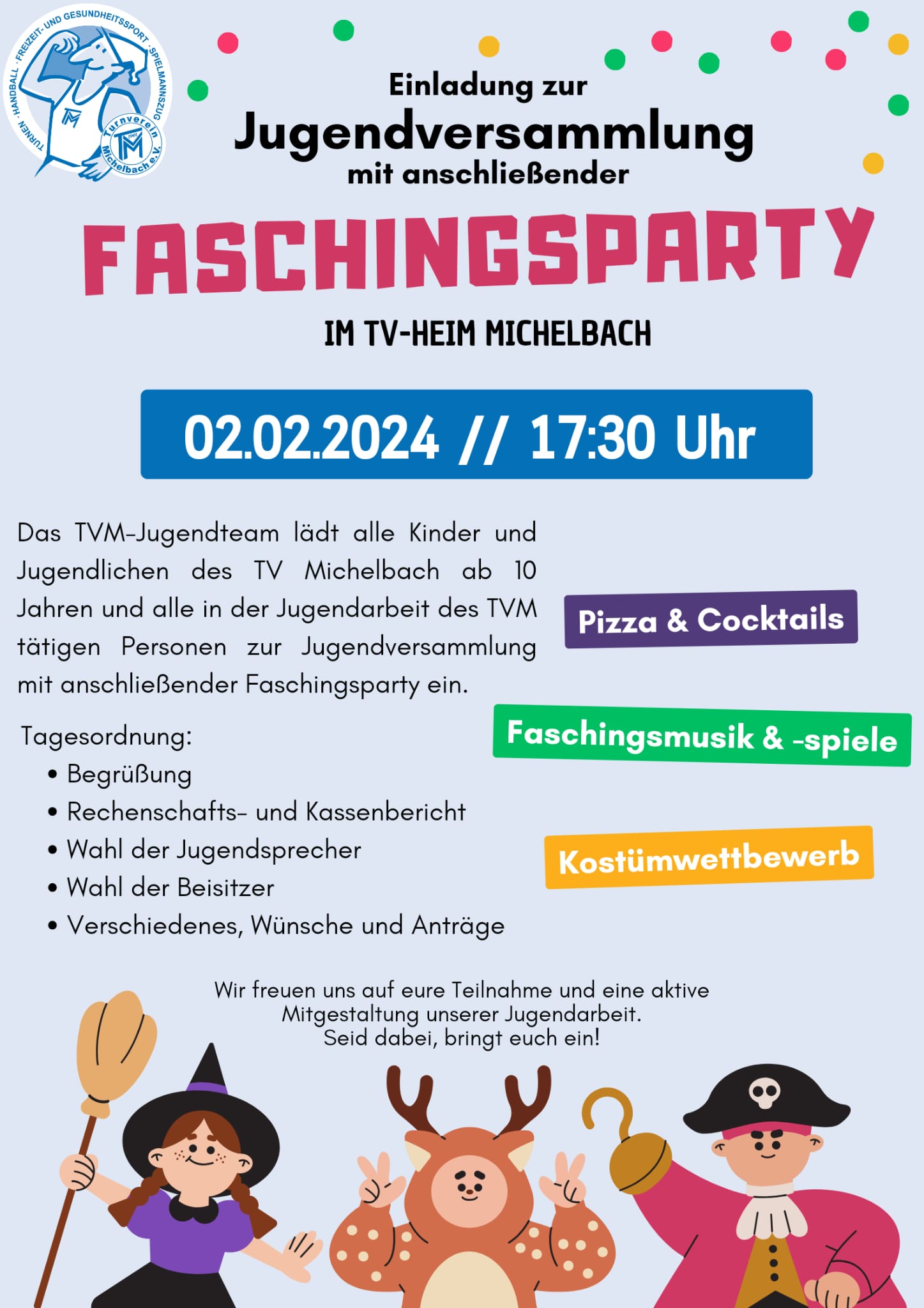 Am 02.02.2024 findet unsere diesjährige Jugendversammlung mit anschließender Faschingsparty statt.