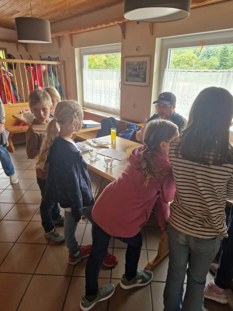 Nach einer kurzen Mittagspause, welche von manchen Kindern beim weiteren Ausprobieren der Instrumente lautstark begleitet wurde, starteten die Kinder in eine Ralley bei uns auf dem Platz. Dabei mussten sich die Kinder einem Quiz, Rasselmemory, Hindernisparcours mit Trommelstöcken, Dosenwerfen und einem Instrumentenkoffer stellen, was von allen bravourös gemeistert wurde.Die vier Stunden vergingen wie im Flug und so mussten wir uns um 18 Uhr von 14 begeisterten Kindern verabschieden. Einige Kinder ließen es sich aber nicht nehmen, noch gleich ihren Eltern ihre musikalischen Fähigkeiten vorzuführen. Wir freuen uns über den Spaß an dem Tag und hoffen auch nächstes Jahr uns wieder an den Ferienspielen beteiligen zu können.