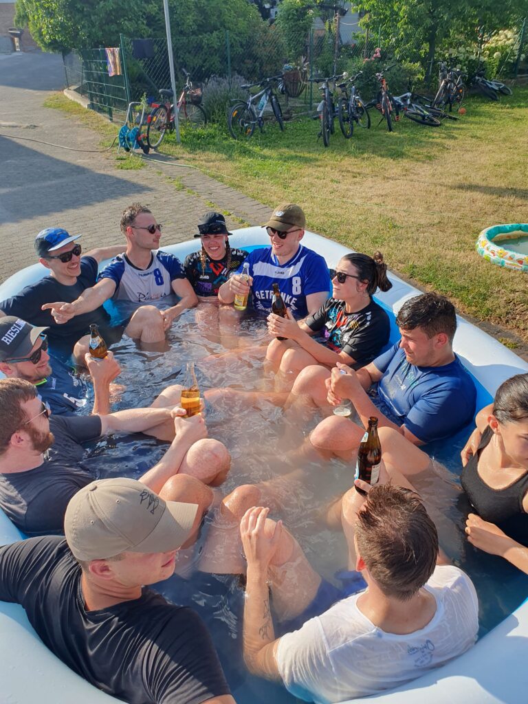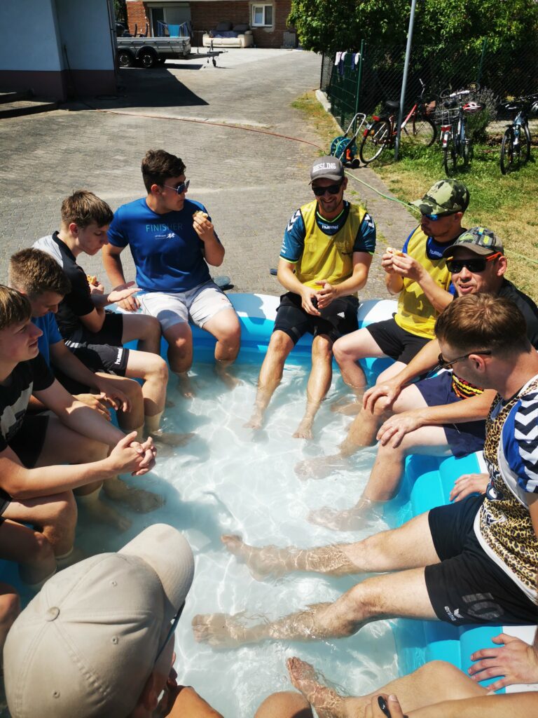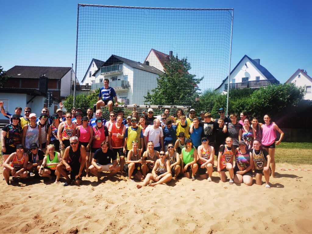 Nach dem gemeinsamen Aufbau bildeten sich 8 Mannschaften, bestehend aus Aktiven, A- und B-Jugend sowie mutigen Inaktiven. Bei viel Sonnenschein und sommerlichen Temperaturen wurde in 15-minütigen Partien im Sand um den Sieg gespielt und der ein oder andere (mehr oder weniger erfolgreiche) Trickwurf präsentiert. Zwischendurch konnte man sich am Buffet stärken und der kurzfristig organisierte Pool sorgte für die nötige Erfrischung zwischendurch. Dabei kamen die kleinsten angehenden Handballer*innen und Fans auf ihre Kosten. Auch die Spiele „Alt gegen Jung“ durften nicht fehlen. Am Ende konnte wieder ein weibliches und ein männliches Siegerteam mit dem HSG-Pokal ausgezeichnet werden. Zum Abschluss gab es noch eine Partie Flunkyball, bei dem das Wurfgeschick nochmal unter Beweis gestellt werden konnte – oder auch nicht.