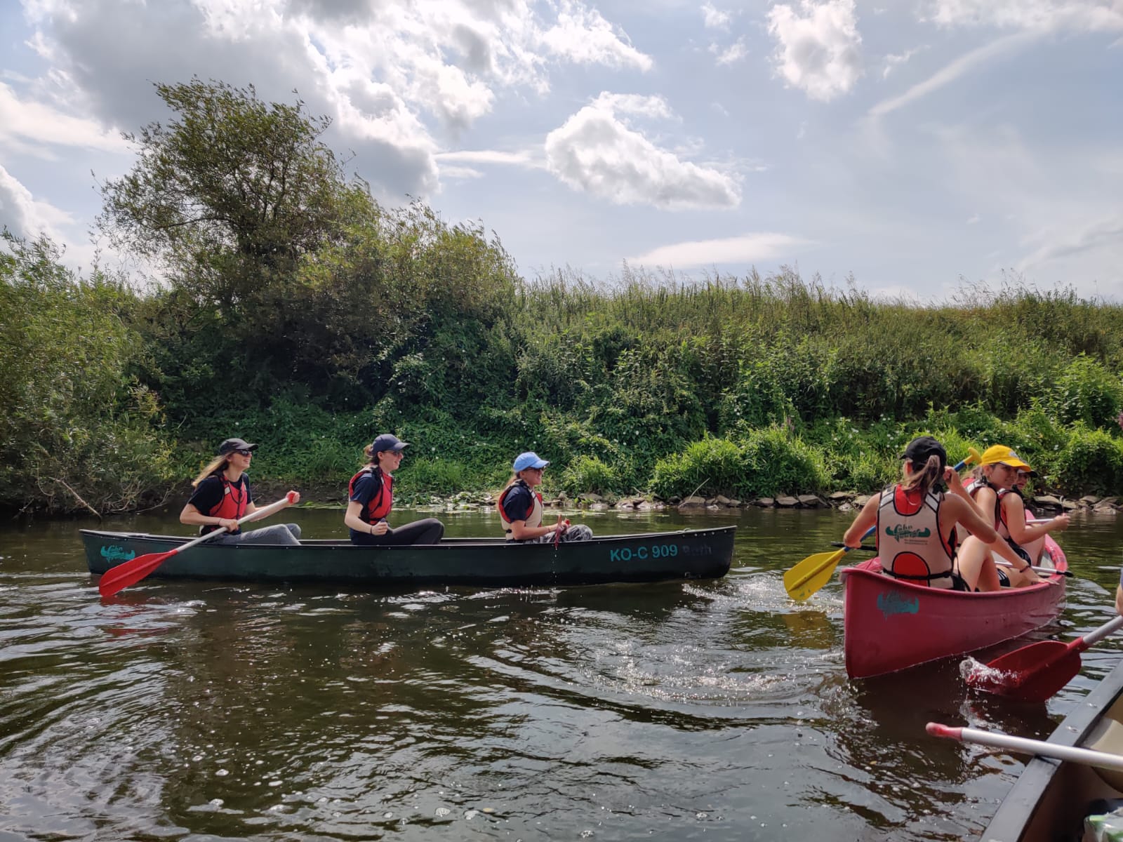 Auch dieses Jahr fand wieder eine Kanutour für alle 13-18-Jährigen statt, die wie letztes Jahr als Tagesausflug durchgeführt wurde. Mit insgesamt 32 Teilnehmenden ging es dann am 22.07. um 8.30 Uhr los Richtung Solms-Schohleck, dem Startpunkt unserer Paddelstrecke. Jedoch gab es schon unterwegs die ersten Schwierigkeiten zu meistern. Doch auch trotz vermeintlichem Motorschaden auf der Autobahn kamen alle Autos pünktlich zur Einweisung an. Fertig ausgestattet mit Schwimmwesten, Getränken und genügend zu Essen ging es dann auch schon los auf die Lahn: Bei manchen schneller, Andere lernten das Gebüsch etwas genauer aus der Nähe kennen. Doch schlussendlich kamen alle an unserem Zwischenstopp an, wo wir uns eine Stärkung wirklich verdient hatten. Von belegten Brötchen und Gemüsesticks bis hin zu Kuchen, es war für jeden etwas dabei. Einige gingen auch noch baden, um sich auf die anstehenden Wasserschlachten vorzubereiten. Diese kamen nämlich nach der Pause vermehrt auf viele Kanus zu, ob freiwillig oder eher unfreiwillig. Auch das Schleusen klappte mit links, sodass wir kurze Zeit später alle gut an unserer Ausstiegsstelle ankamen. Gegen 17:30 Uhr traten wir dann wieder unsere Heimreise an. Angekommen am TVM-Heim gab es dann abschließend noch Pizza. So wurde ein gelungener Tag abgerundet.