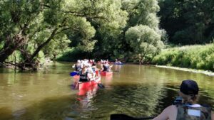Vom 28.-30. Juni war die Jugend des TV Michelbach mit 31 Teilnehmern wieder auf ihrer alljährlichen Kanutour. Zum zweiten Mal fuhren wir nach Schlitz um auf der Fulda zu paddeln. Nach einer aufregenden Hinfahrt kamen wir auf unserem Zeltplatz an einem Bauernhof an. Die Zelte waren schnell aufgebaut, sodass wir dann zum gemütlichen Teil, nämlich Grillen und Kälber streicheln, übergehen konnten. Am nächsten Morgen starteten wir nach dem Frühstück sofort mit dem Paddeln auf den Fluss. Bei, für uns alle überraschend, gutem Wetter wurden die Kanus zu Wasser gelassen und die vierstündige Tour in Angriff genommen. Auf der Hälfte der Strecke gab es eine ausgiebige Rast. Nach der Pause ging es nass weiter, da zwei der Kanus kenterten. Dank den Temperaturen war dies aber eine willkommene Erfrischung. Am Abend gab es noch ein Lagerfeuer und Stockbrot. Sonntags morgens wurden die Zelte abgebaut und nach einer Partie Wikingerschach kehrten wir auch schon wieder zurück nach Michelbach.