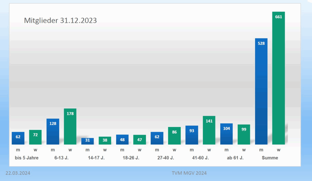 Als Ausblick wurde die Veranstaltung „Visionäre gesucht – TVM 2025“ für den 19. April angekündigt. Dort lädt Vorstand und Beirat alle Mitglieder zu einer offenen Diskussion über die Vereinsarbeit der Zukunft ein. Die Veranstaltung wird nur ca. 60-90 Minuten dauern und den Auftakt für eine Art „Zukunftswerkstatt“ bilden.